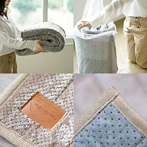 表面を起毛させることで空気を含んだやさしい肌触りに。2インチブロックキルトの柔らかさも感じられる毛布のようなキルトラグに仕上がりました。