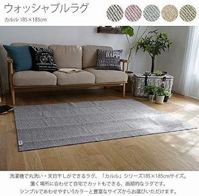 :ナチュラルカラーを基調としたラグなので、お部屋をくつろぎ感のある快適空間に。