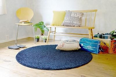 スミノエ ラグ・カーペット ブルー 120×120cm 洗える 防ダニ ミランジュ正円