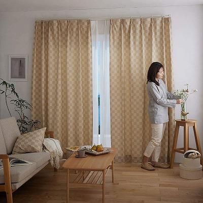 スミノエ 洗える ドレープ カーテン チェッカ 100×178cm ベージュ 1枚入