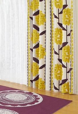 ケイランサスをモチーフにした目を惹くドレープカーテン。