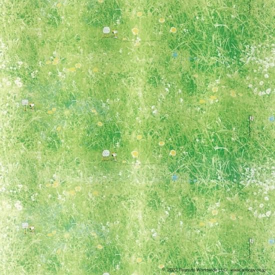 草原でゴルフを楽しむスヌーピーの姿が描かれています。
