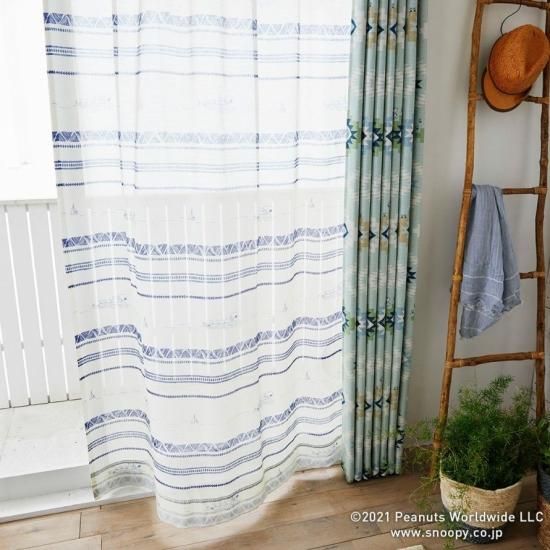 Rowing ローウィング オーダーカーテン シアー ブルー 薄地 フラット 全1色 洗える 日本製 PEANUTS 洗える 日本製 PEANUTS スヌーピー 安い おしゃれ カーテン