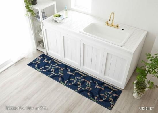 MICKY Mitsumaru circle MAT キッチンマット すべり止め 床暖房対応 日本製 ディズニー ラグマット 北欧 おしゃれ 厚手 洗える バスマット トイレマット ブルー