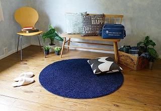 スミノエ ラグ・カーペット ブルー 120×120cm 洗える 防ダニ レーヴ正円