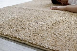 ボリュームのある手触り・足心地のレーヴ。リッチなタッチで高級感もあり足音が響きにくく、触ると手が埋まってしまうボリューム感は素足で歩きたくなる1枚。