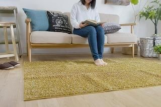 セミシャギーのさらりとした肌触り。MIX感の強いブラウン・ブルー・イエローと同色をMIXしたベージュ・グレー・グリーンの6色展開。子供部屋からリビングまで場所に合わせてお色とサイズをお選びいただけます。