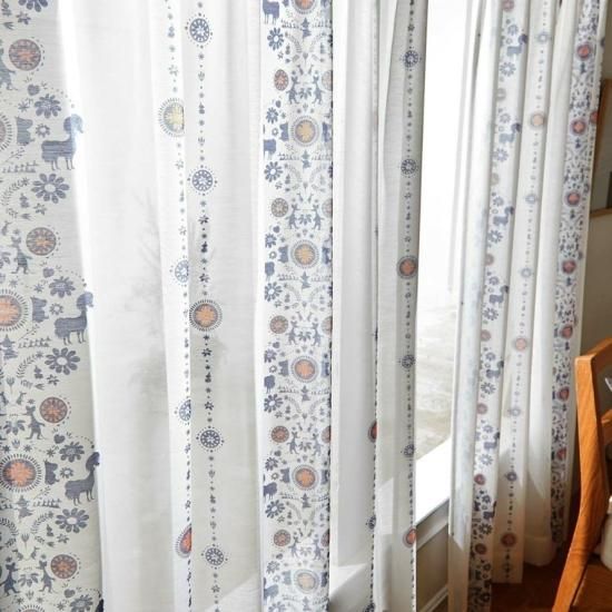 北欧フィンランドらしいカラーリングのおしゃれなオーダーレースカーテン。