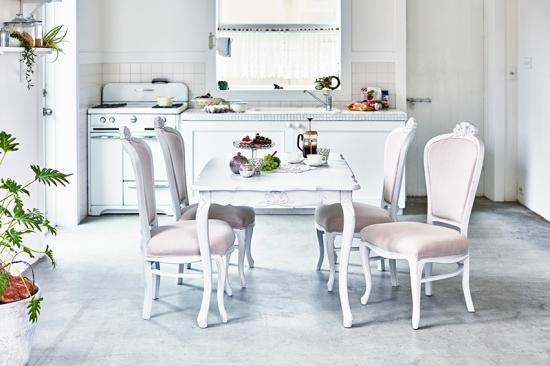 クラシックな上品さとモダンなテイストをあわせ持つアンティーク風ダイニングテーブル。