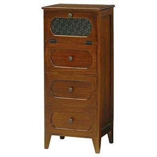 チェスト 収納棚 萩原 MCH-5184BR ブラウン レトロ 花ガラス リビング