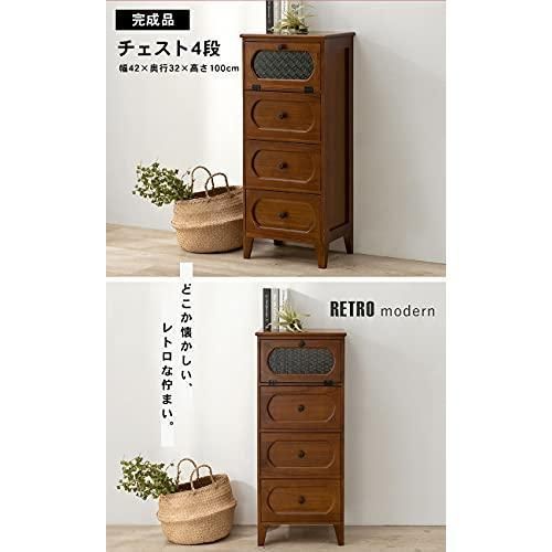 チェスト 収納棚 萩原 MCH-5184BR ブラウン レトロ 花ガラス リビング