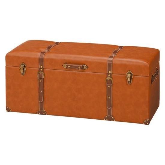 収納スツール 収納ボックス トランク型収納スツール 萩原 MC-6002LBR スツール ライトブラウン レトロ おしゃれ 収納 レトロ モダン