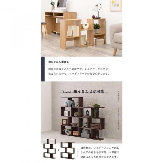 オープンラック 木製 本棚 萩原 RCC-1004WH ホワイト シェルフ ジグザグラック 北欧 おしゃれ観葉植物 棚 シェルフ 引出し付きシェルフ デザインラック ディスプレイラック
