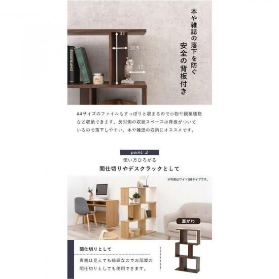 【A4サイズがすっぽり入る】:A4サイズのファイルがすっぽり収まるのでオフィスや在宅ワーク時にも重宝するラック。本や雑誌の落下を防ぐ安全背板付きなので、文庫本や漫画の単行本などの整理におすすめです。