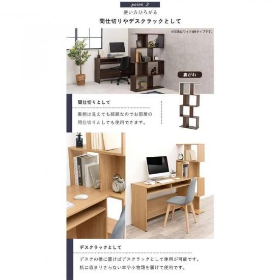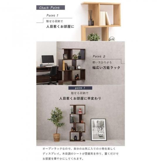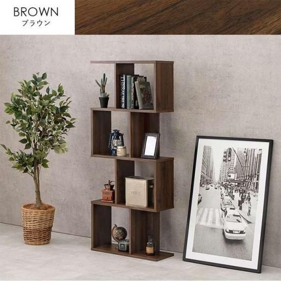 オープンラック 木製 本棚 萩原 RCC-1005BR ブラウン シェルフ ジグザグラック 北欧 おしゃれ観葉植物 棚 シェルフ 引出し付きシェルフ デザインラック ディスプレイラック