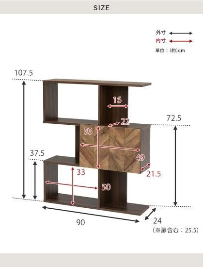 サイズ (約)幅90×奥行25.5×高さ107.5cm
