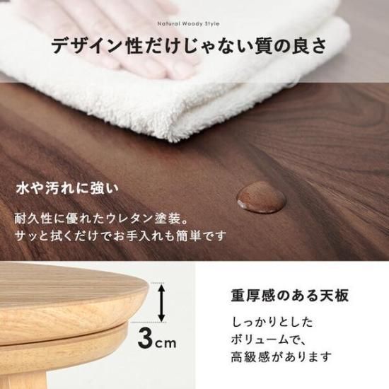 表情豊かな天然木突板を使用した洗練されたデザインの円形こたつです。